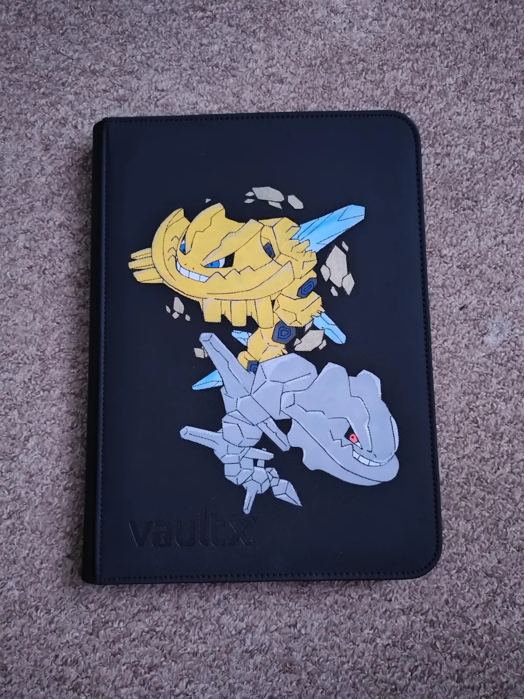 My binders are always hand drawn/painted Vault X binders. I generally gather pictures for the inspirations/ideas for you, before I then draw a better design digitally if needed. I then print out the design and paint it onto the binder for you. :)